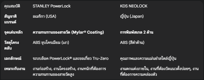 ความทนทาน: นอกจากโครงสร้าง ABS ที่แข็งแรงแล้ว ตัวสายวัดเองก็มักจะเคลือบด้วยสารป้องกันการขีดข่วนและลดแสงสะท้อน ทำให้ตัวเลขคมชัดและทนทานต่อการใช้งานหนัก